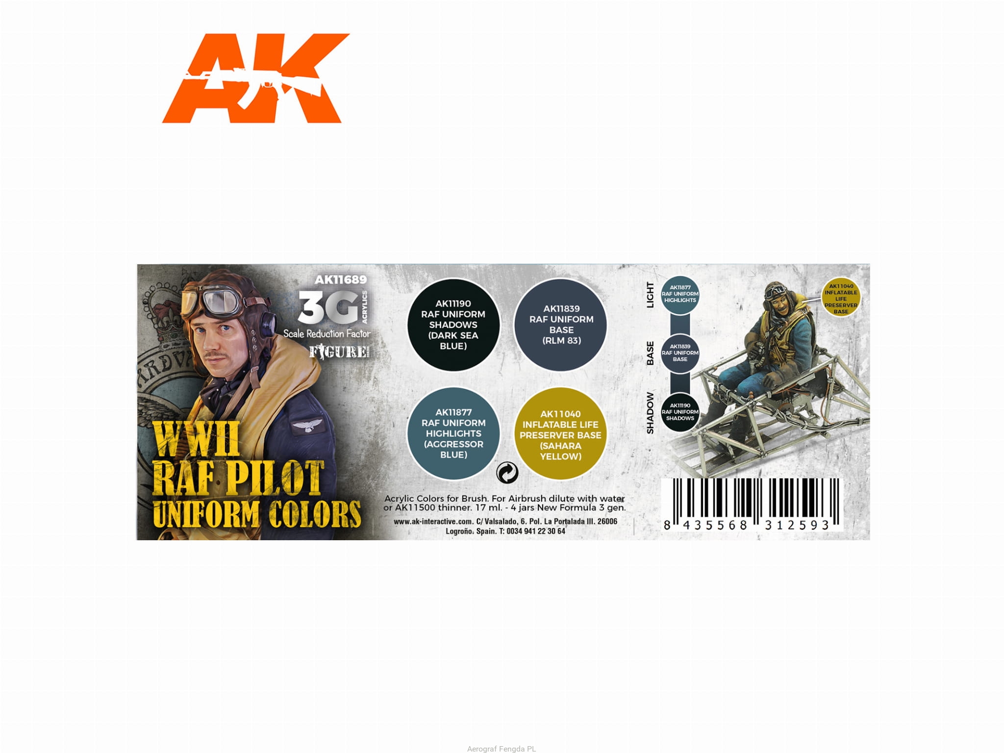 AK Acrylics 3Gen AIRCRAFT SET AK11689 WWII RAF UNIFORM COLORS 3G (4x17ml)
