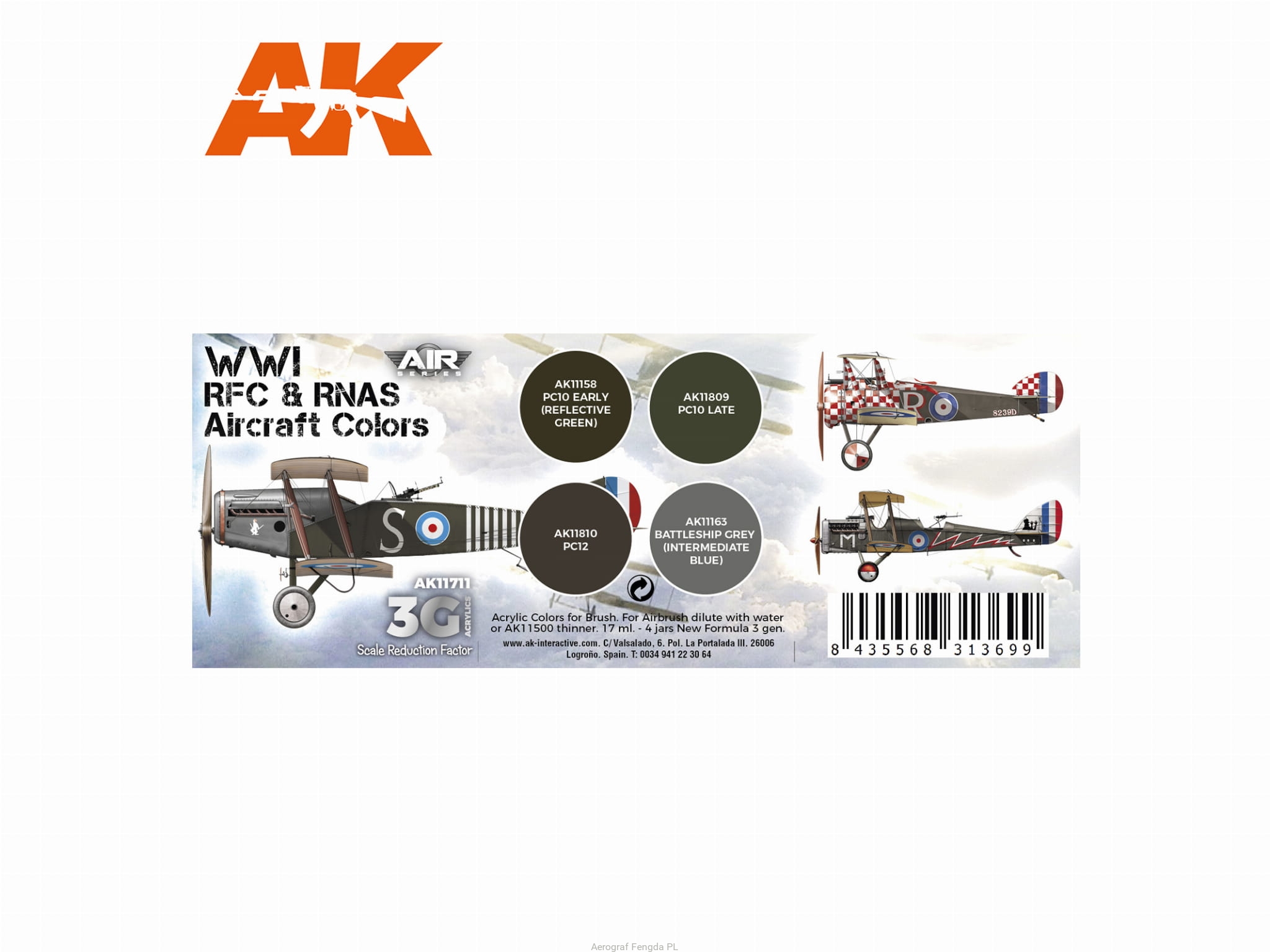 AK Acrylics 3Gen AIRCRAFT SET AK11711 WWI RFC & RNAS. British Aircraft Colors SET 3G (4x17ml)