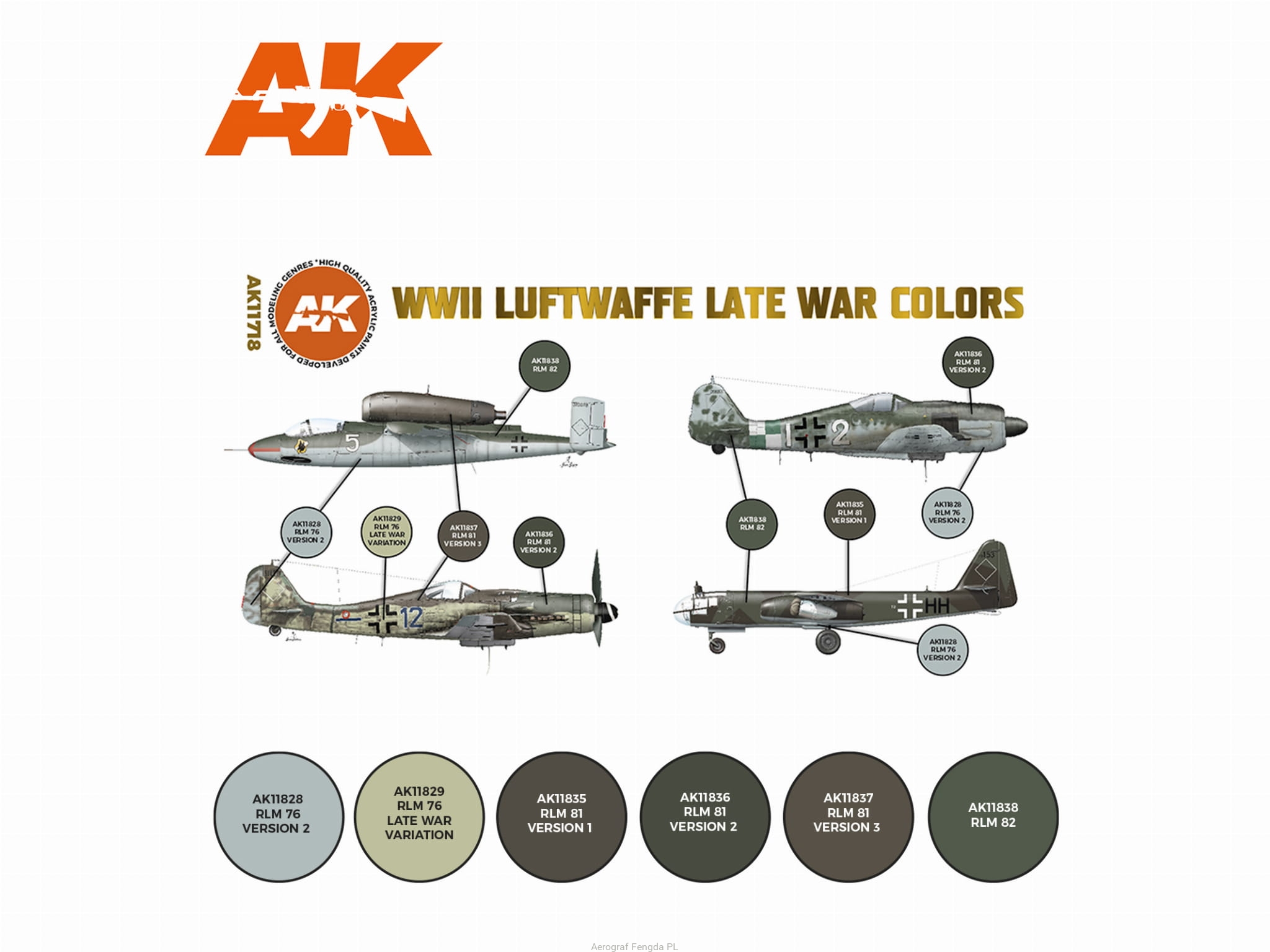 AK Acrylics 3Gen AIRCRAFT SET AK11718 WWII Luftwaffe Late War Colors SET 3G (6x17ml)