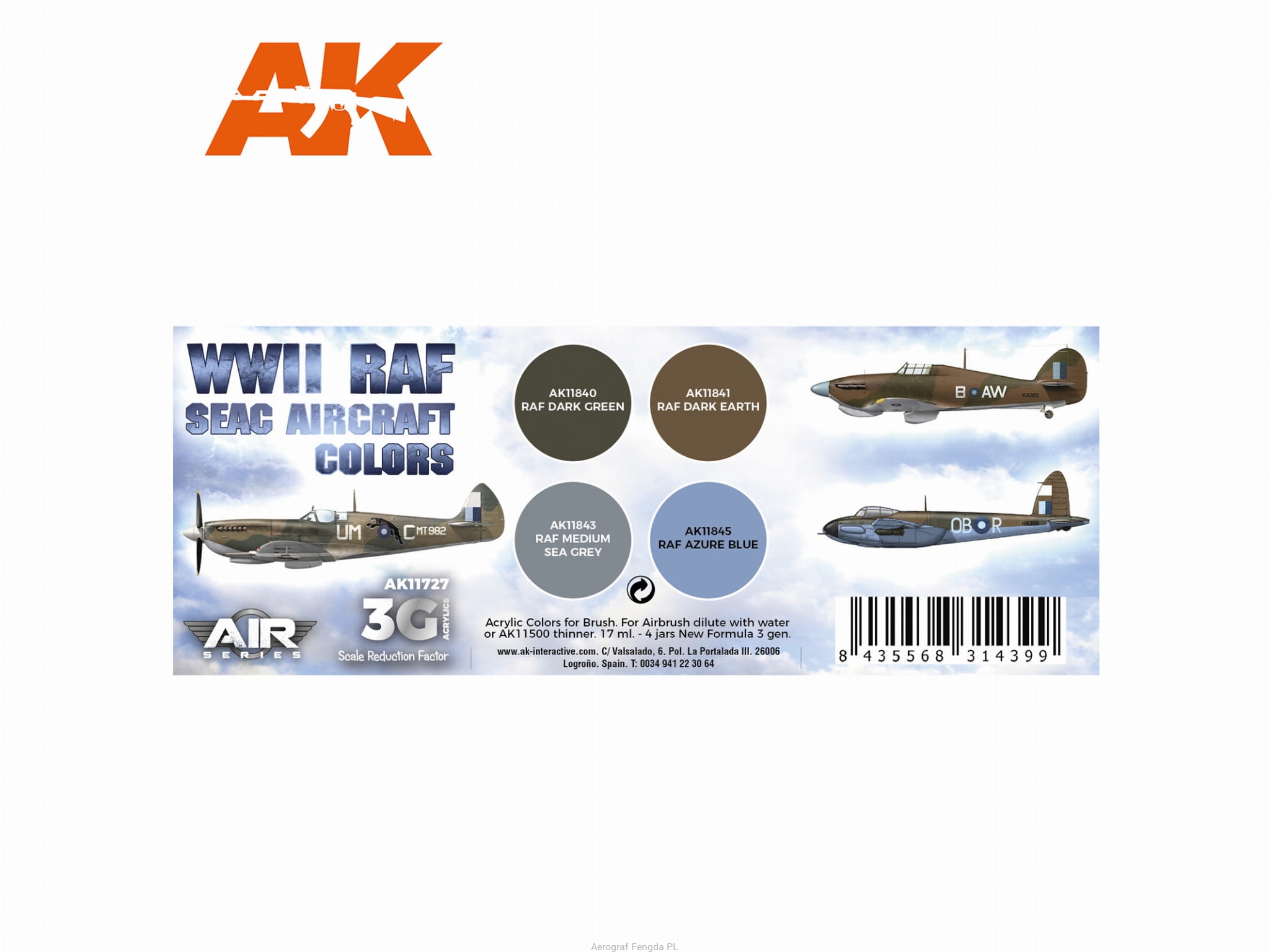 AK Acrylics 3Gen AIRCRAFT SET AK11727 WWII RAF SEAC Aircraft Colors SET 3G (4x17ml)