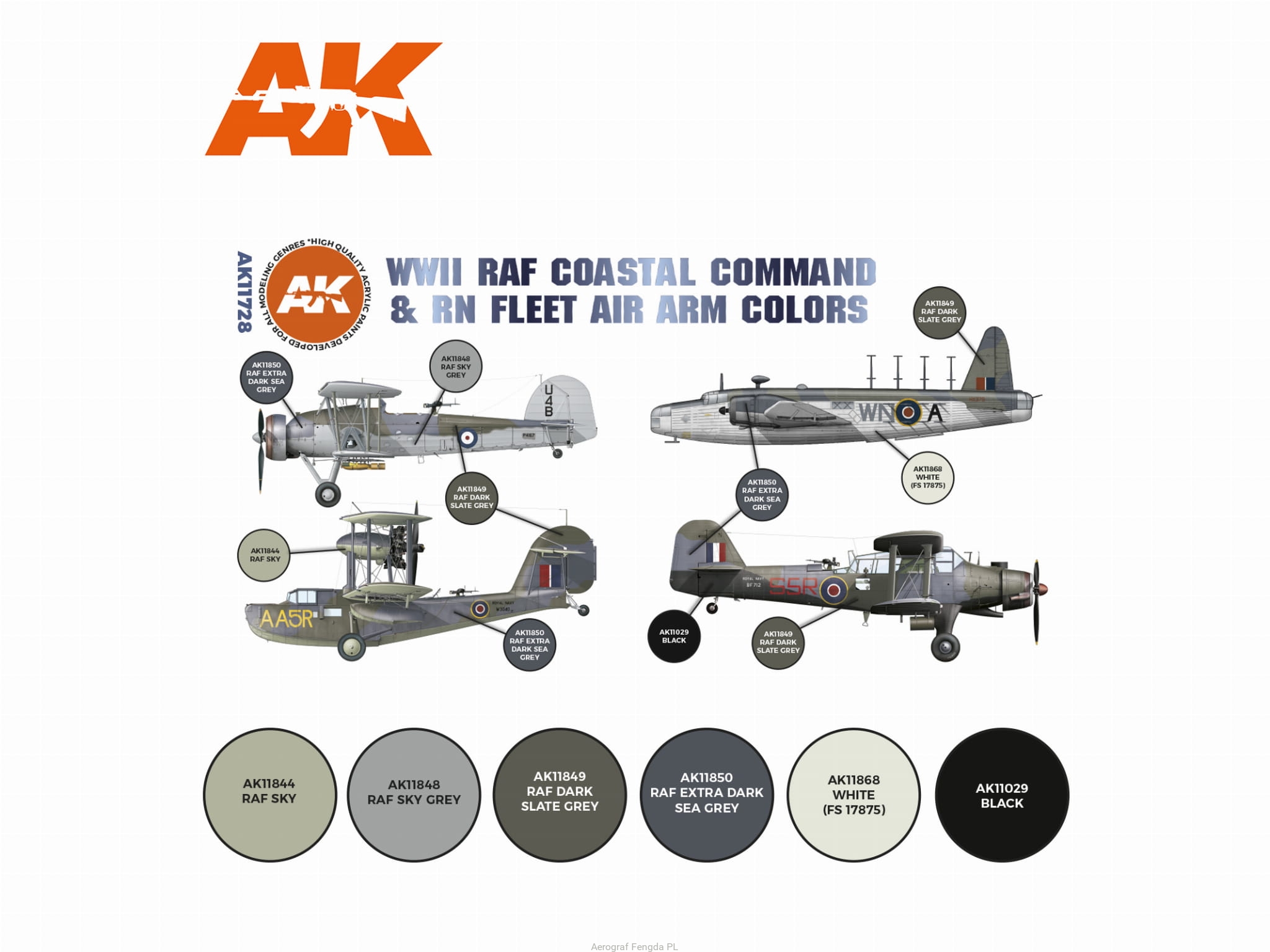AK Acrylics 3Gen AIRCRAFT SET AK11728 WWII RAF Coastal Command & RN Fleet Air Arm SET 3G (6x17ml)