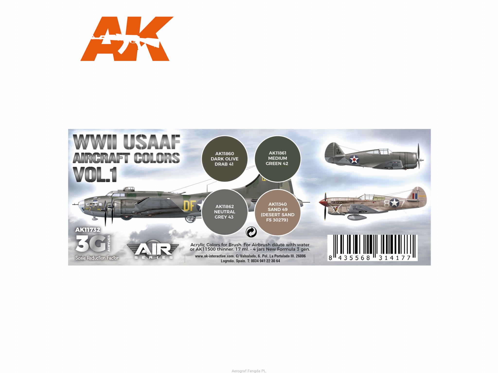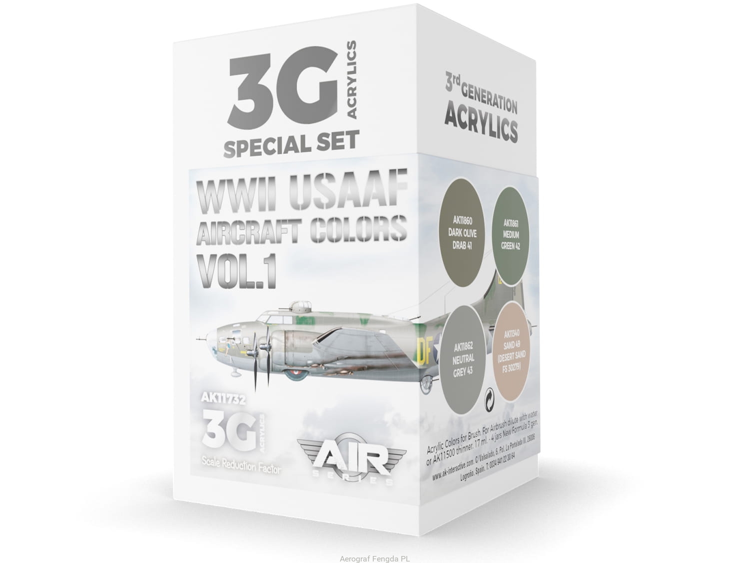 AK Acrylics 3Gen AIRCRAFT SET AK11732 WWII USAAF Aircraft Colors Vol.1 SET 3G (4x17ml)