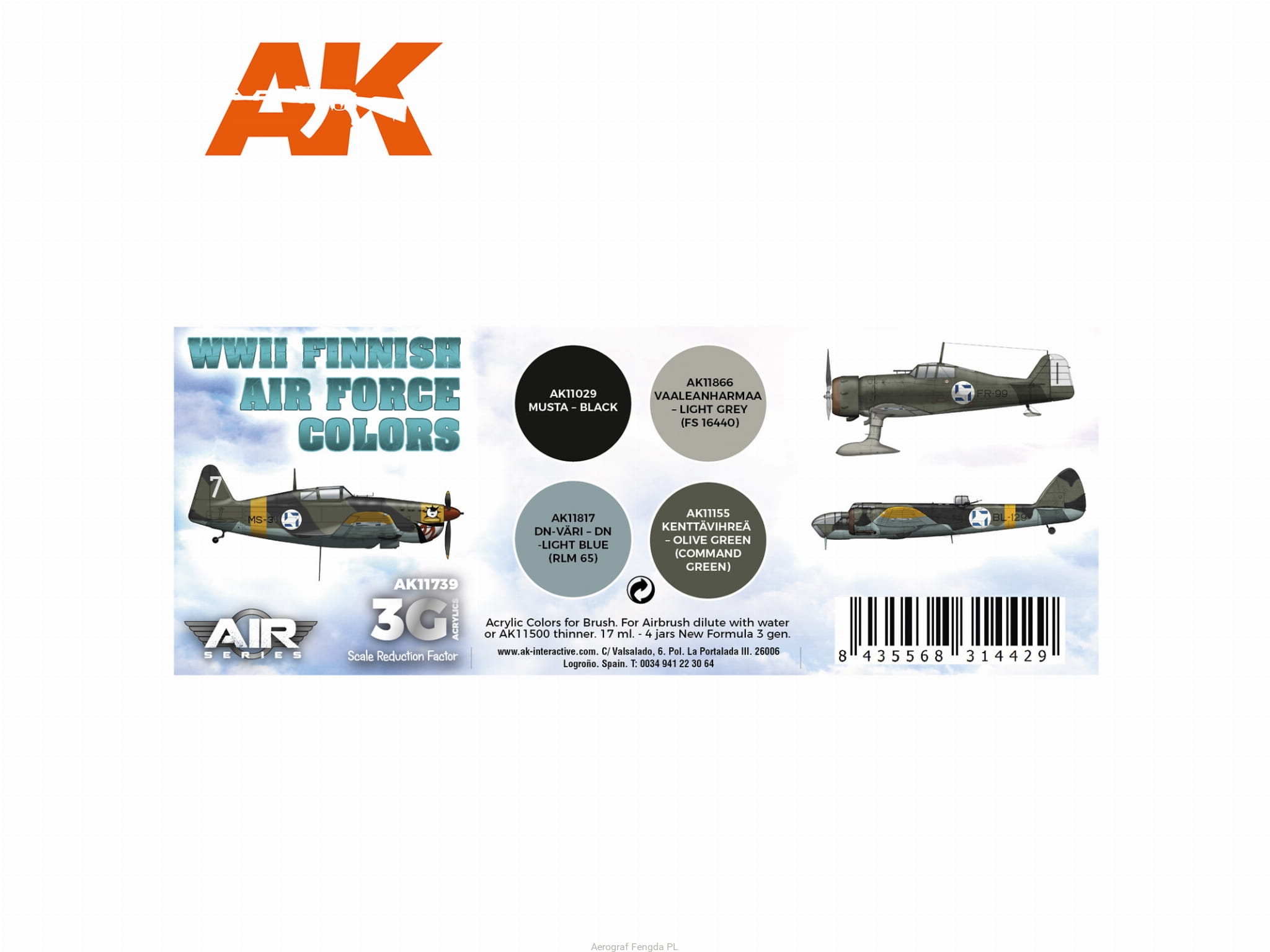 AK Acrylics 3Gen AIRCRAFT SET AK11739 WWII Finnish Air Force Colors SET 3G (4x17ml)