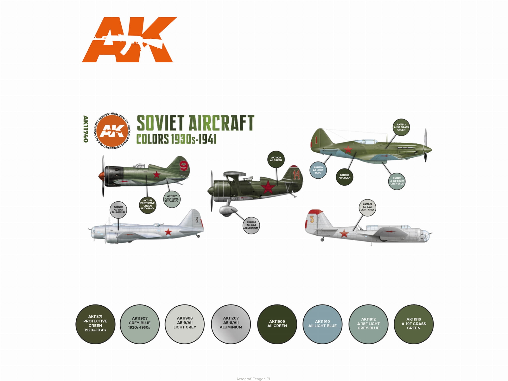AK Acrylics 3Gen AIRCRAFT SET AK11740 Soviet Aircraft Colors 1930s-1941 SET 3G (8x17ml)