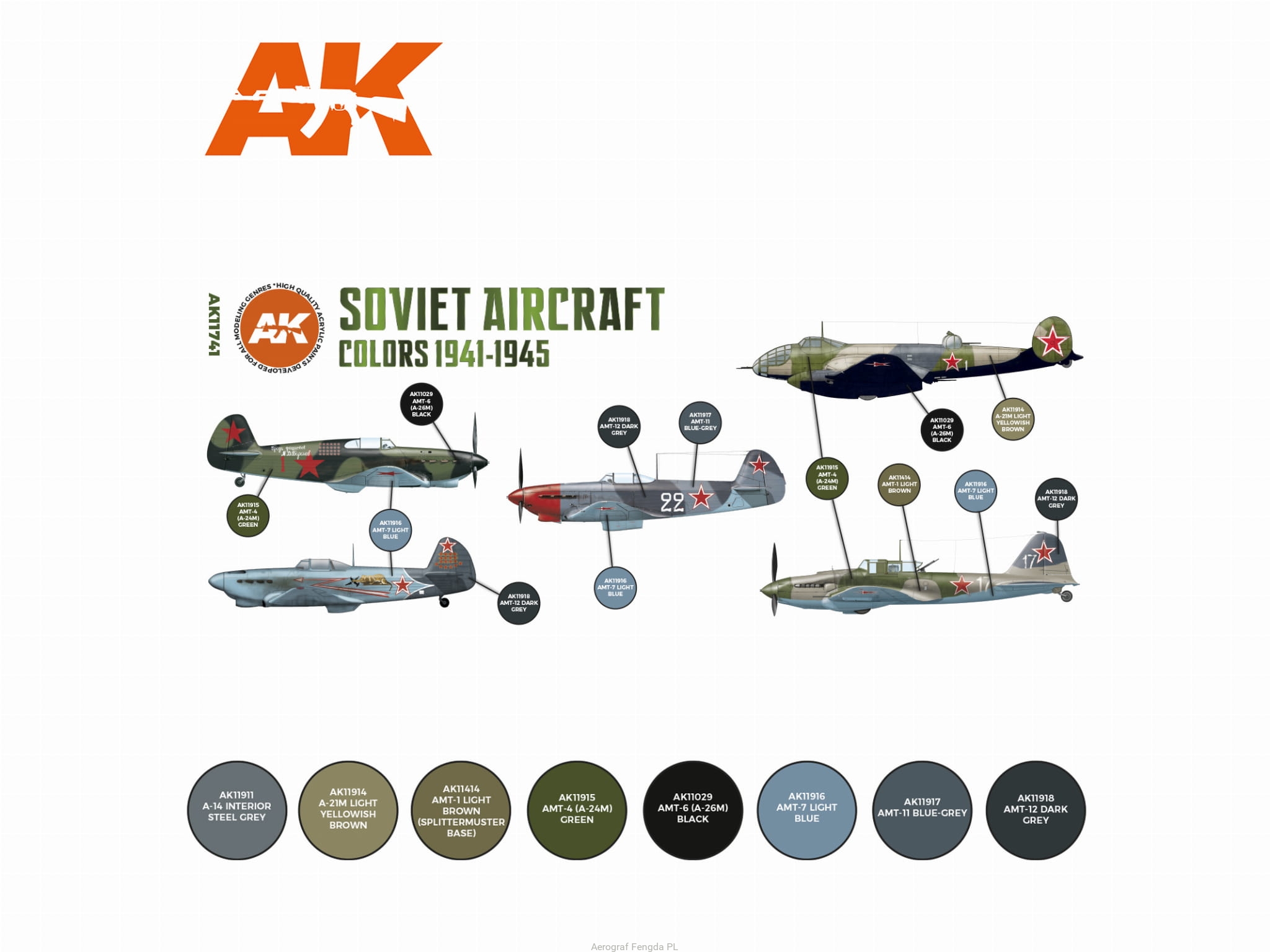AK Acrylics 3Gen AIRCRAFT SET AK11741 Soviet Aircraft Colors 1941-1945 SET 3G (8x17ml)