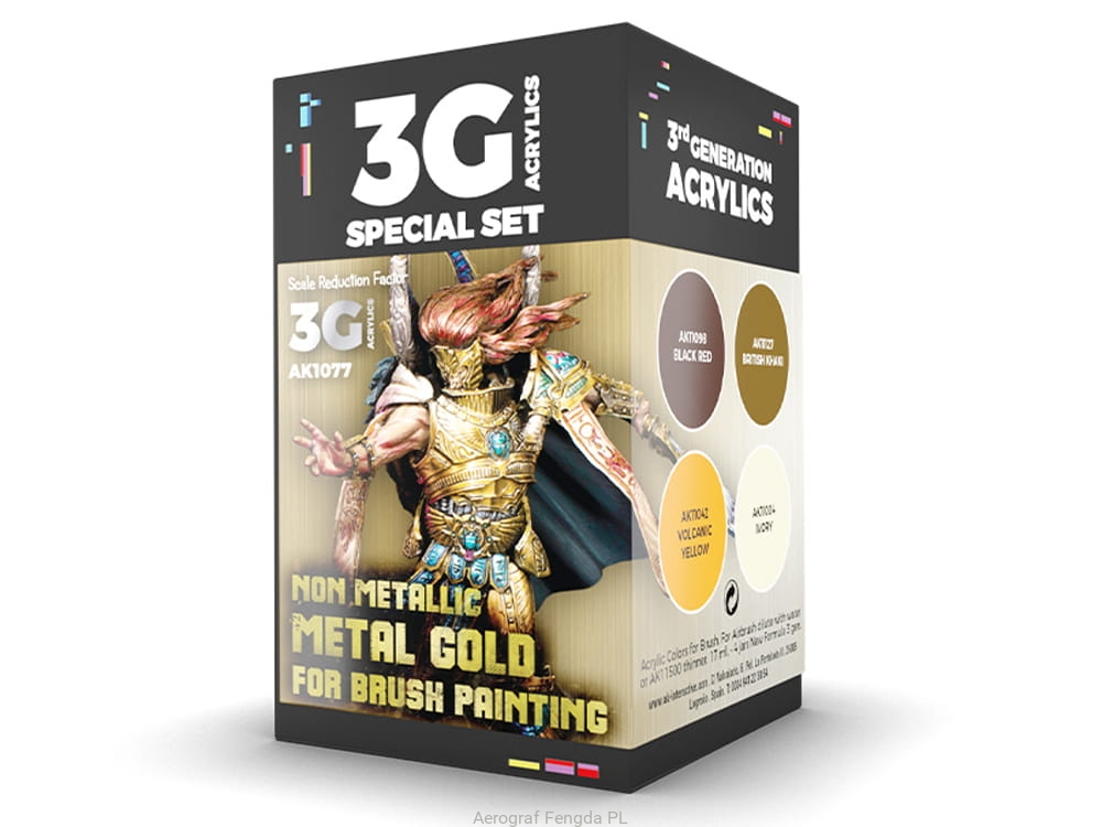 AK Acrylics 3Gen WARGAME SET AK1077 NON METALLIC METAL GOLD (W B) (4x17ml)