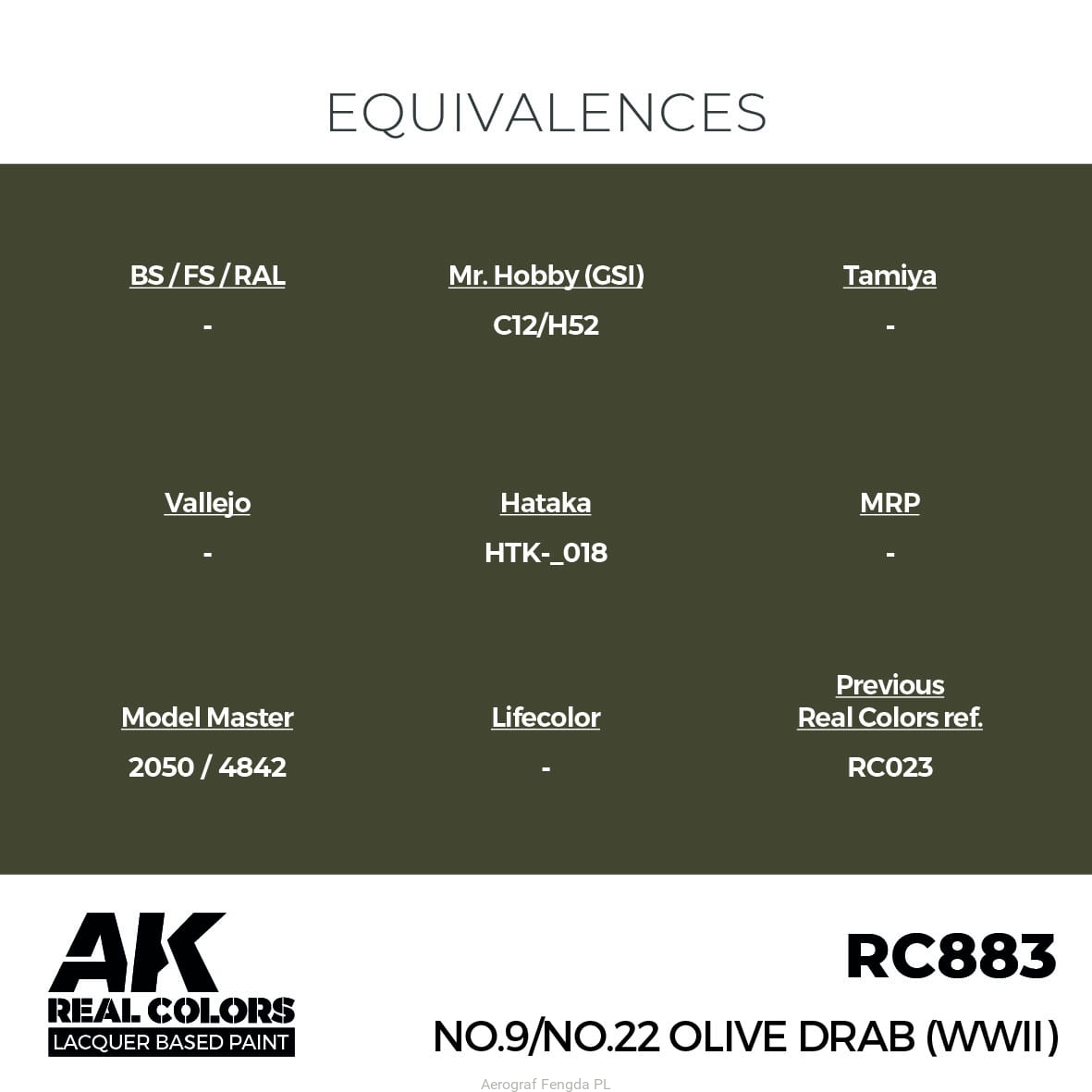 AK REAL COLORS RC883 No.9/No.22 Olive Drab (WWII) (17ml) (old RC023)
