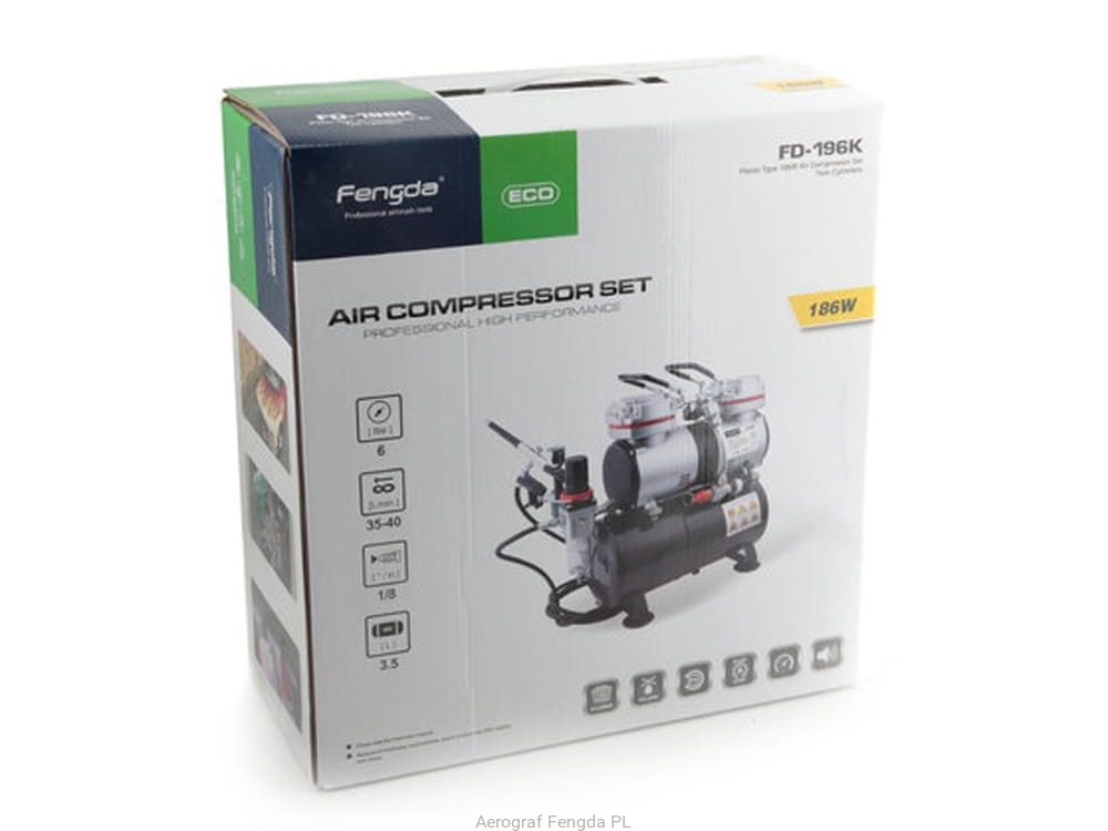Airbrush Set Fengda FD-196K with Compressor FD-196, Airbrush FE-130 and accessories