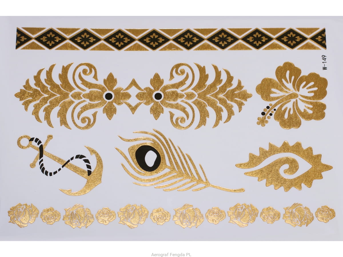 Gold Black | Jewelry Flash Tattoo stickers W-149, 21x15cm