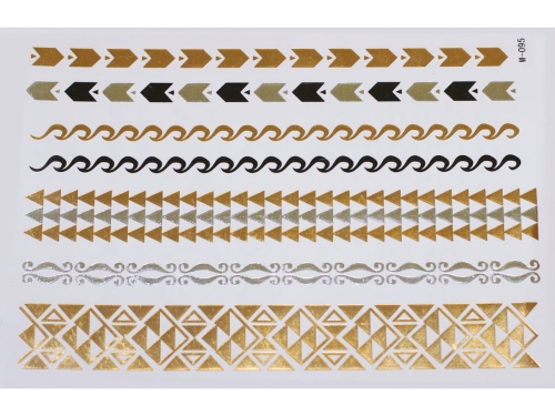 Złote a srebrne tymczasowe wodoodporne tatuażowe naklejki inspirowane biżuteria (bransoletkami, naszyjnikami, pierścionkami, indyjskie, afrykańskie, egipskie, motywy geometryczne i inne), tatuaż wytrzyma 3-5 dni, dla aplikacji i usunięcia przygotowaliśmy dla Was poradnik: