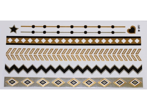 Złote a srebrne tymczasowe wodoodporne tatuażowe naklejki inspirowane biżuteria (bransoletkami, naszyjnikami, pierścionkami, indyjskie, afrykańskie, egipskie, motywy geometryczne i inne), tatuaż wytrzyma 3-5 dni, dla aplikacji i usunięcia przygotowaliśmy dla Was poradnik: