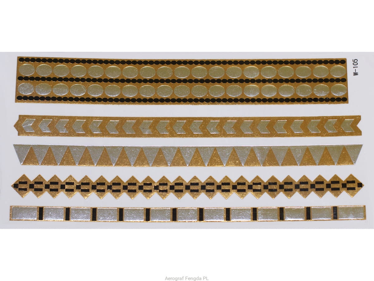 Złote a srebrne tymczasowe wodoodporne tatuażowe naklejki inspirowane biżuteria (bransoletkami, naszyjnikami, pierścionkami, indyjskie, afrykańskie, egipskie, motywy geometryczne i inne), tatuaż wytrzyma 3-5 dni, dla aplikacji i usunięcia przygotowaliśmy dla Was poradnik: