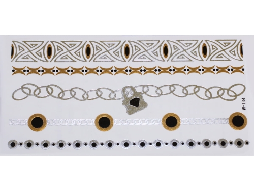 Gold Silver Black | Jewelry Flash Tattoo stickers W-134, 21x11cm