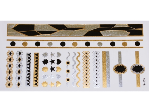 Gold Silver Black | Jewelry Flash Tattoo stickers W-135, 21x11cm