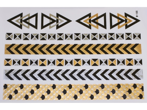 Złote a srebrne tymczasowe wodoodporne tatuażowe naklejki inspirowane biżuteria (bransoletkami, naszyjnikami, pierścionkami, indyjskie, afrykańskie, egipskie, motywy geometryczne i inne), tatuaż wytrzyma 3-5 dni, dla aplikacji i usunięcia przygotowaliśmy dla Was poradnik: