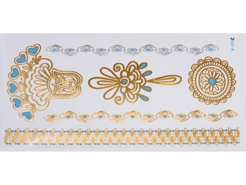 Gold Silver Blue | Jewelry Flash Tattoo stickers W-096C, 21x11cm