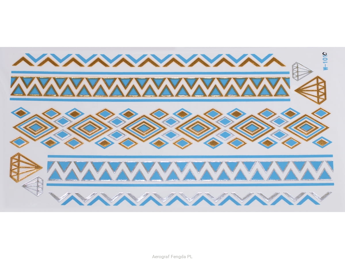 Złote a srebrne tymczasowe wodoodporne tatuażowe naklejki inspirowane biżuteria (bransoletkami, naszyjnikami, pierścionkami, indyjskie, afrykańskie, egipskie, motywy geometryczne i inne), tatuaż wytrzyma 3-5 dni, dla aplikacji i usunięcia przygotowaliśmy dla Was poradnik: