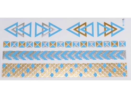 Złote a srebrne tymczasowe wodoodporne tatuażowe naklejki inspirowane biżuteria (bransoletkami, naszyjnikami, pierścionkami, indyjskie, afrykańskie, egipskie, motywy geometryczne i inne), tatuaż wytrzyma 3-5 dni, dla aplikacji i usunięcia przygotowaliśmy dla Was poradnik: