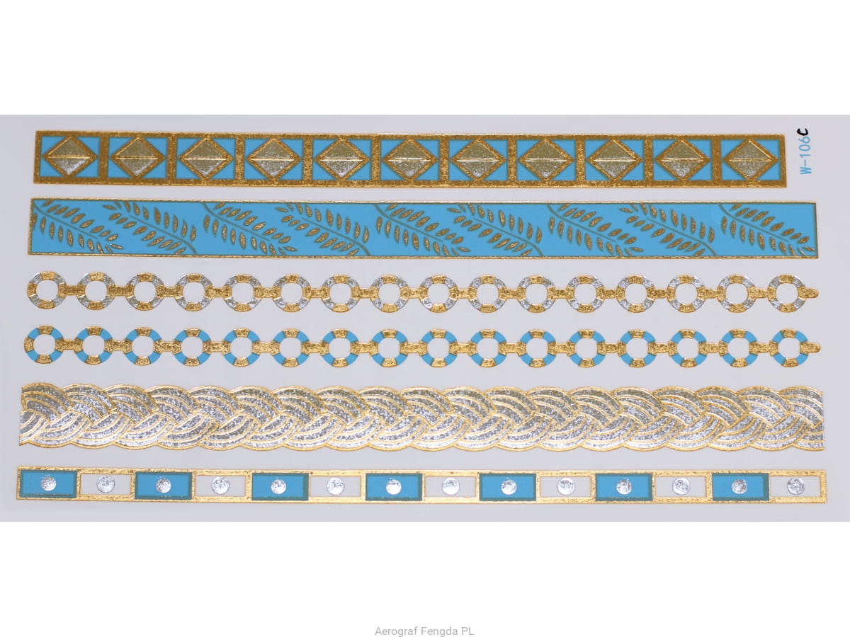 Gold Silver Blue | Jewelry Flash Tattoo stickers W-106C, 21x11cm