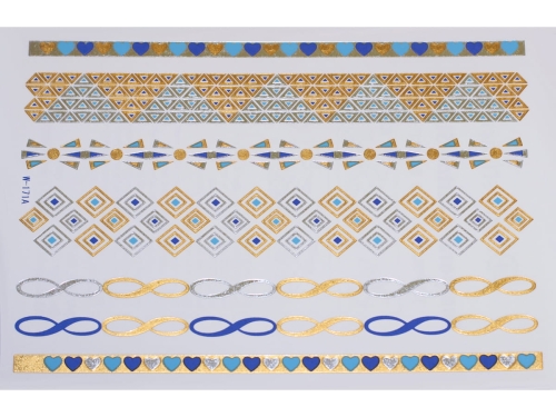 Gold Silver Blue | Jewelry Flash Tattoo stickers W-171C, 21x15cm