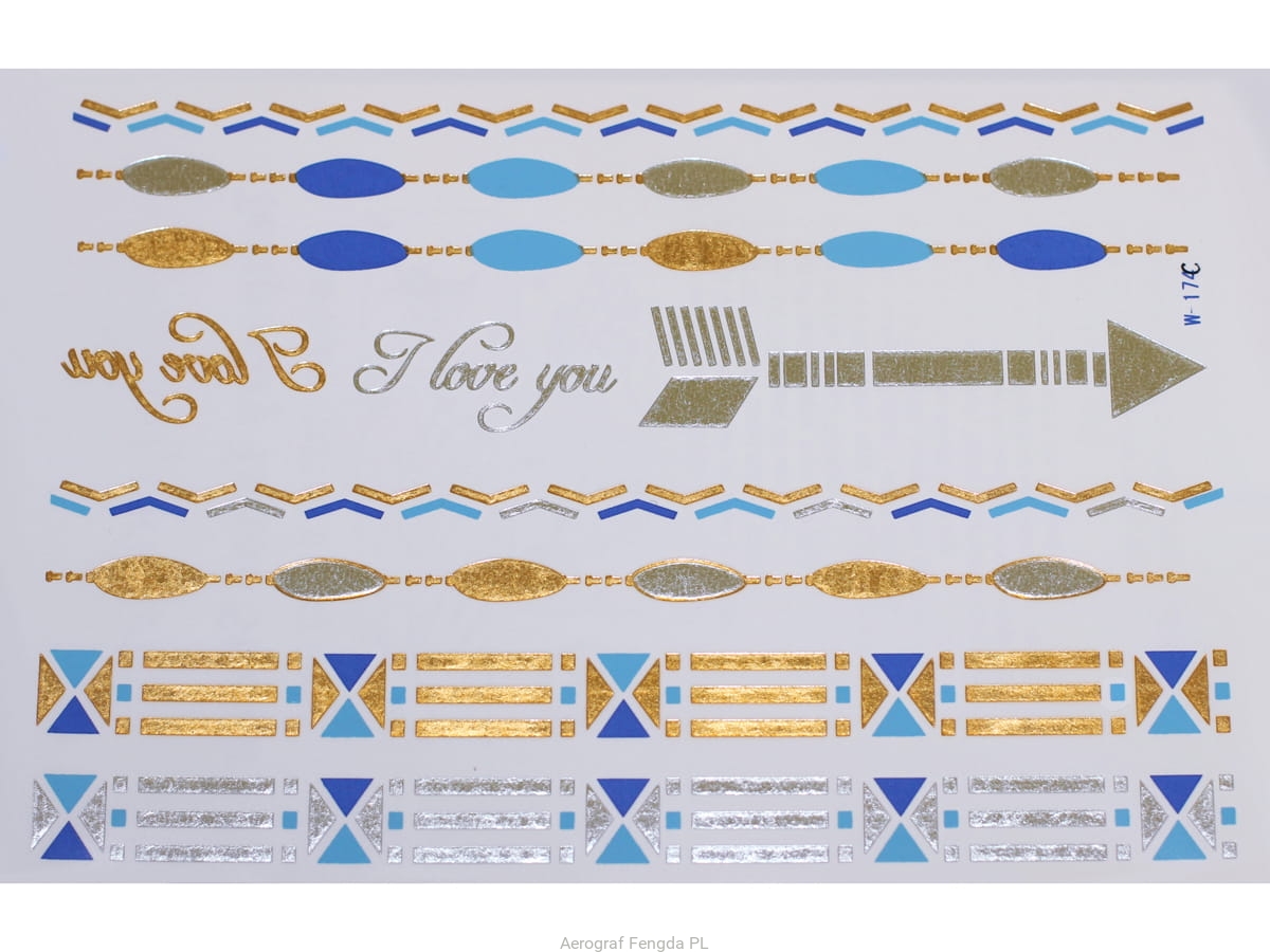 Złote a srebrne tymczasowe wodoodporne tatuażowe naklejki inspirowane biżuteria (bransoletkami, naszyjnikami, pierścionkami, indyjskie, afrykańskie, egipskie, motywy geometryczne i inne), tatuaż wytrzyma 3-5 dni, dla aplikacji i usunięcia przygotowaliśmy dla Was poradnik: