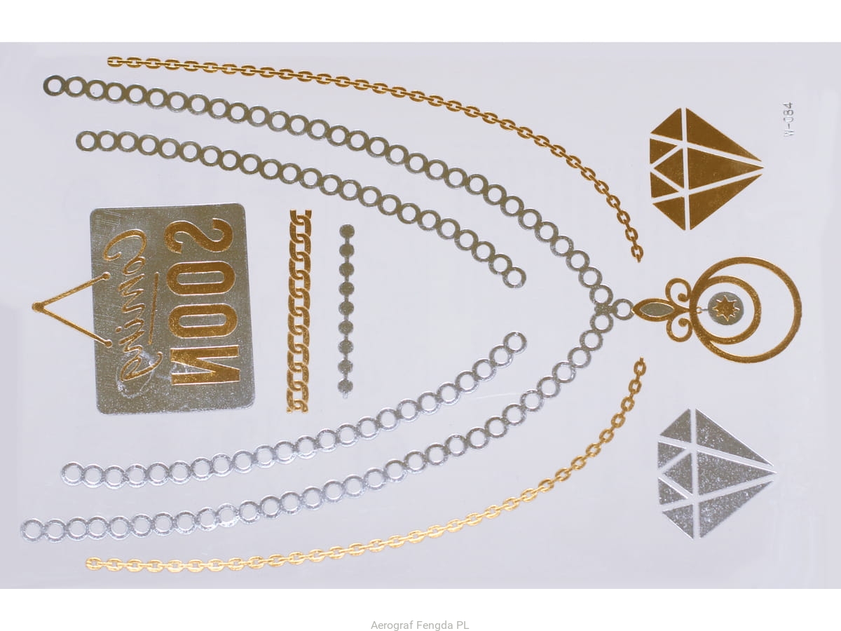 Złote a srebrne tymczasowe wodoodporne tatuażowe naklejki inspirowane biżuteria (bransoletkami, naszyjnikami, pierścionkami, indyjskie, afrykańskie, egipskie, motywy geometryczne i inne), tatuaż wytrzyma 3-5 dni, dla aplikacji i usunięcia przygotowaliśmy dla Was poradnik: