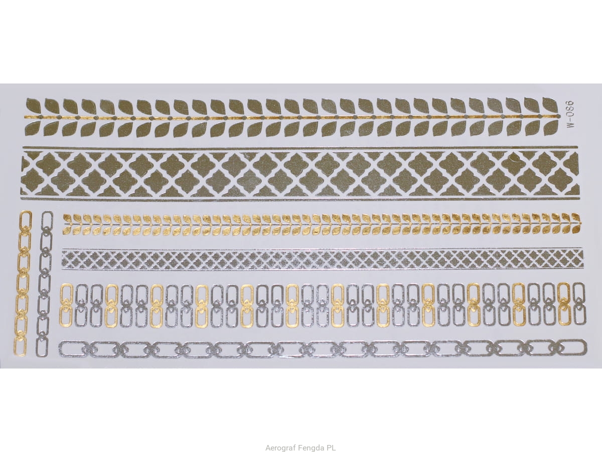 Złote a srebrne tymczasowe wodoodporne tatuażowe naklejki inspirowane biżuteria (bransoletkami, naszyjnikami, pierścionkami, indyjskie, afrykańskie, egipskie, motywy geometryczne i inne), tatuaż wytrzyma 3-5 dni, dla aplikacji i usunięcia przygotowaliśmy dla Was poradnik: