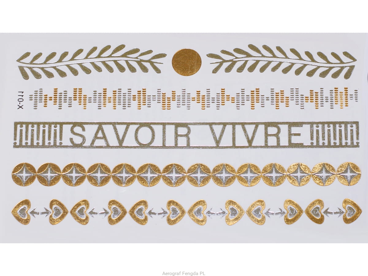 Złote a srebrne tymczasowe wodoodporne tatuażowe naklejki inspirowane biżuteria (bransoletkami, naszyjnikami, pierścionkami, indyjskie, afrykańskie, egipskie, motywy geometryczne i inne), tatuaż wytrzyma 3-5 dni, dla aplikacji i usunięcia przygotowaliśmy dla Was poradnik:
