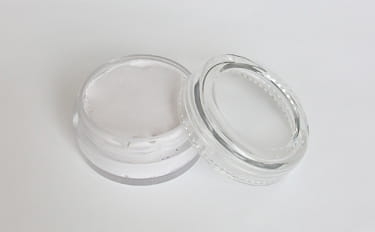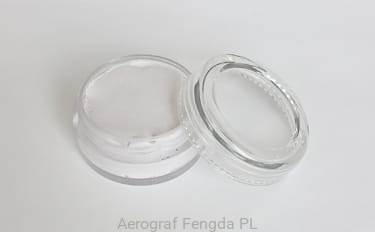 Perłowa farba do Body Painting sie nakłada pędzlem, gąbką albo przez zwilżone palce (farbe na ciało zmieszamy z wodą w stosunku, ktory Wam bedzie jak na wicej pasować - mniej wody = wysze pokrycie farby ). Jak farba na ciałe zaschnie, zrobi sie stała i elastyczna warstwa, ktora nie pęka