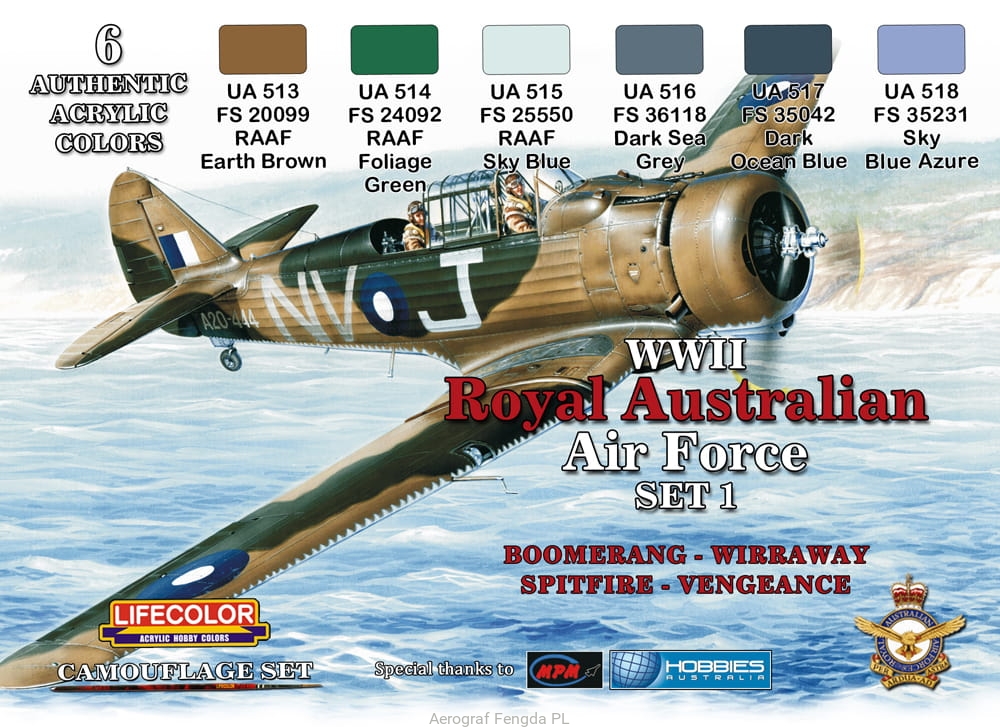 Zestaw kamuflażowych farb LifeColor XS01 WII Royal Australian Air Force SET1